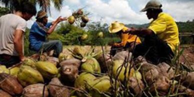The outer husk is manually or mechanically separated from the coconut. The husk is the part of the coconut that will be used to produce coir.